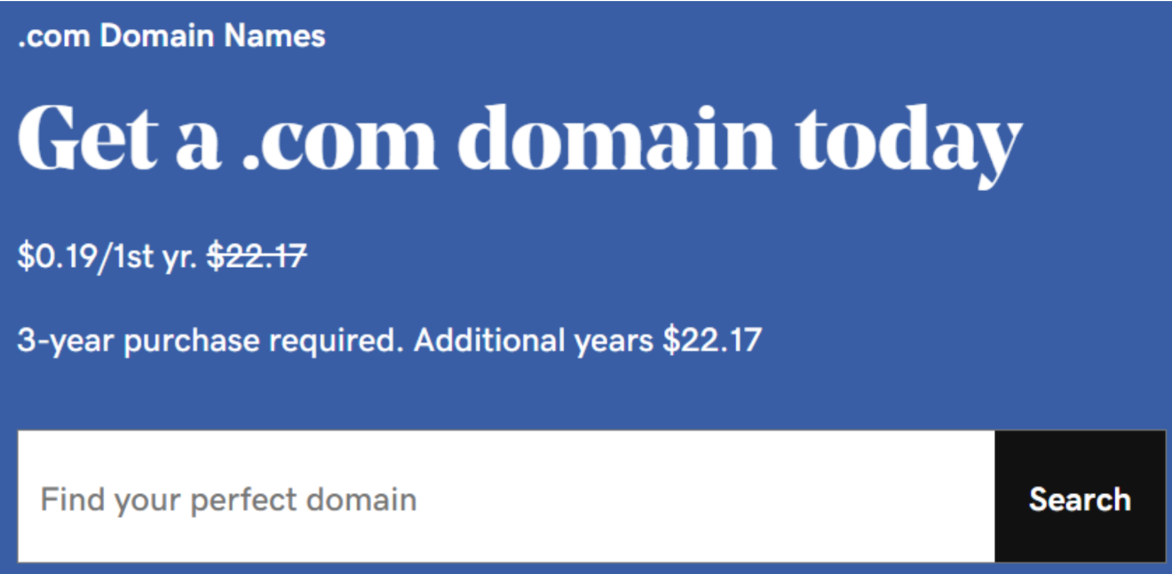 - Pricing - Some registrars offer low introductory prices, but their renewal rates can be significantly higher. For example, GoDaddy offers a very low offer of $0.19 for a .com domain. Only that you’re locked in for 3 years, and pay $44.34 for the last two years.