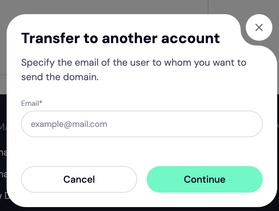 You’ll get a pop-up to enter the email of the user you want to transfer to. Ensure that all details are accurate, as this information will be used for verification.