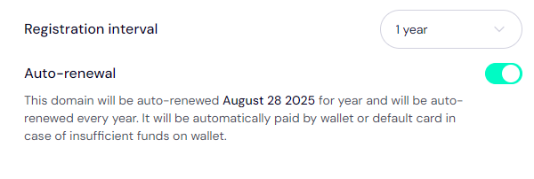 - Renewal – To avoid losing a valuable premium domain, it is highly advisable to enable the auto-renewal feature.
