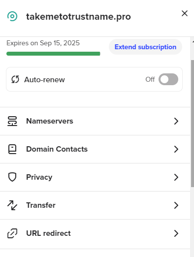 For example, if your domain's current expiration date is the 25th of September, 2024, after transferring it to Trustname, your domain's new expiry date will be the 25th of September, 2025.