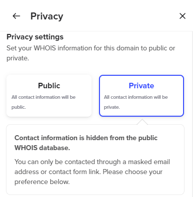 The next thing you want to do is to disable 'Domain Privacy' for your domain on your Spaceship account. Domain privacy is a service that shields your contact details from the public Whois database.