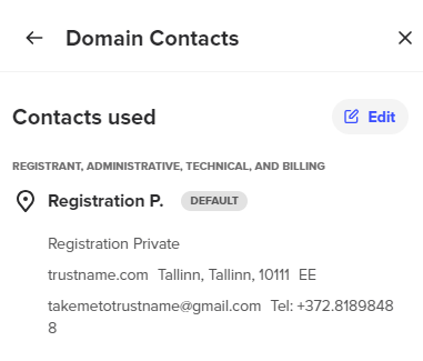 - If you need to change your contact details (email), click on 'Edit' and make the necessary changes. However, note that this will re-enable the ICANN 60 days lock and you'd have to wait for 60 days to transfer it out.