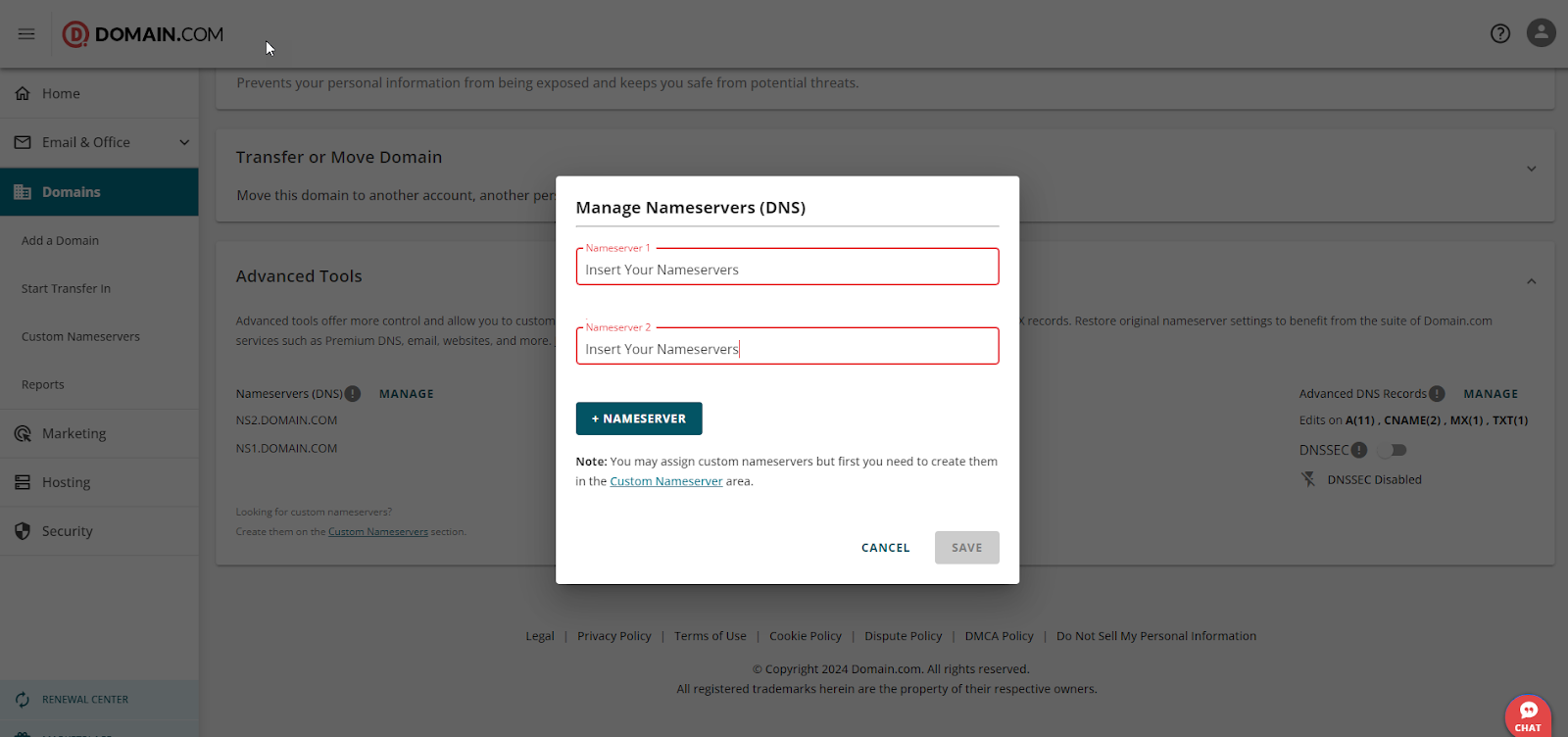 - Input your new nameserver settings.
