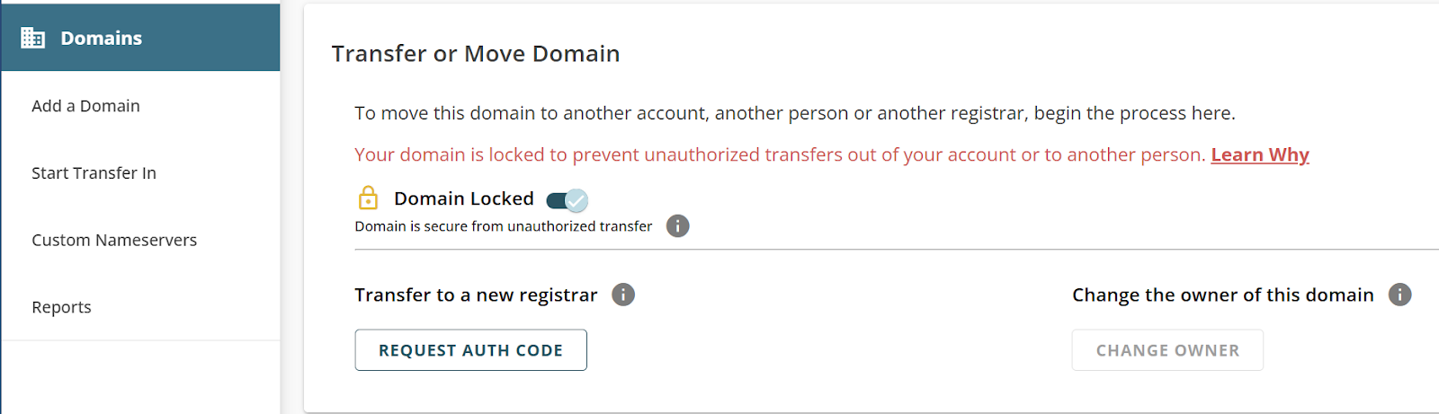 - After unlocking the domain, you'll receive another confirmation pop-up. When the Domain Lock toggle turns grey, it means your domain is now successfully unlocked.