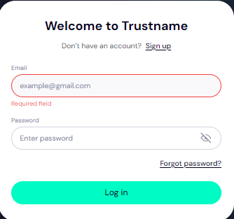 Go to Trustname.com and click 'Login' in the top-right corner to access your account.