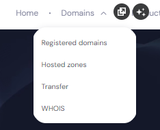 Navigate to the Domains dropdown menu in the header, then select Transfer to open the domain transfer portal.