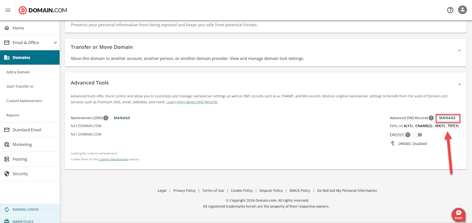 From here, you can update DNS records, modify nameservers, and enable DNSSEC for added security.