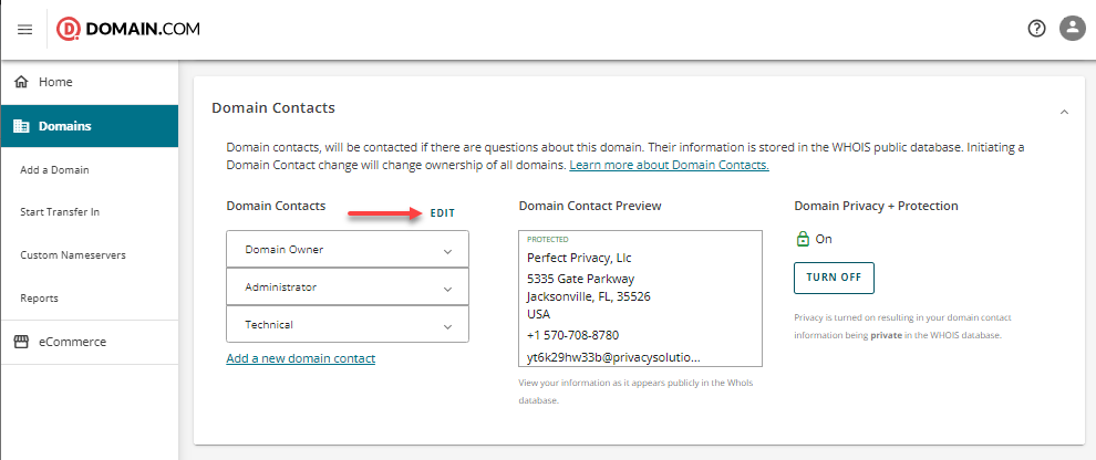 To review or update your domain contact details, navigate to: