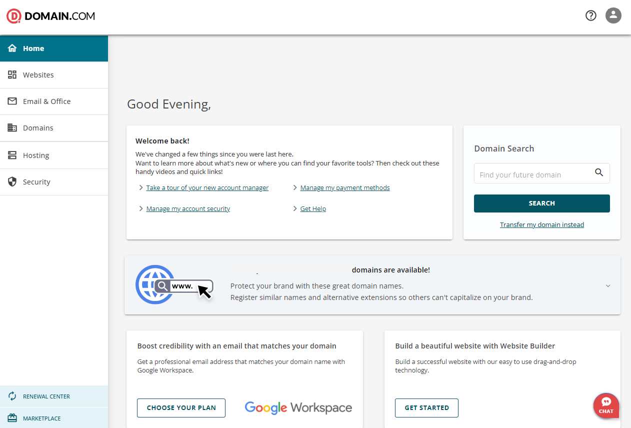 Also, Domain.com partners with Google Workspace to offer their users a business email service, costing another $72 to $216 per year.