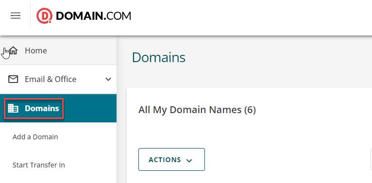 - In the left-hand menu, click on the 'Domains' button.