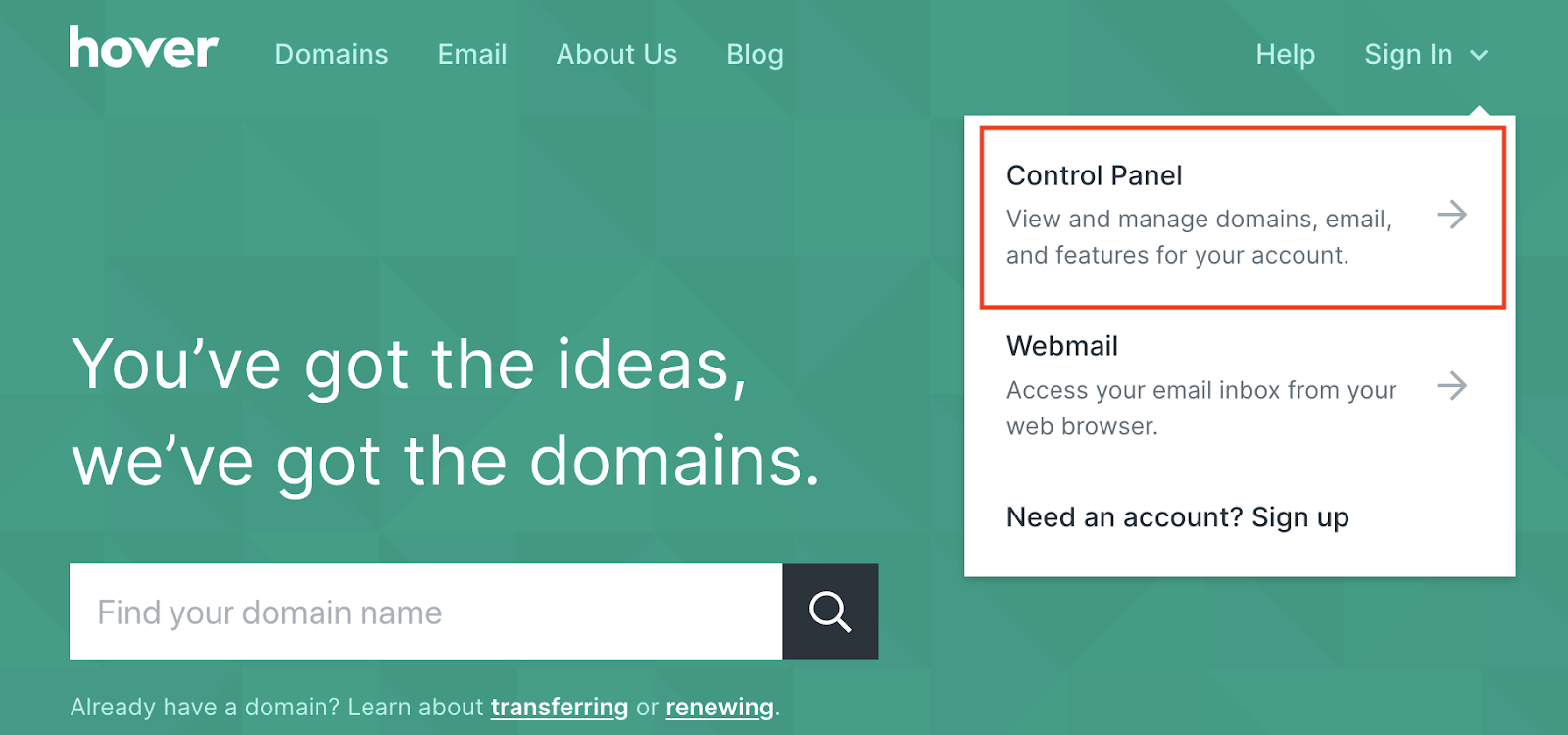 - Sign In To Your Hover Control Panel
