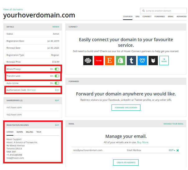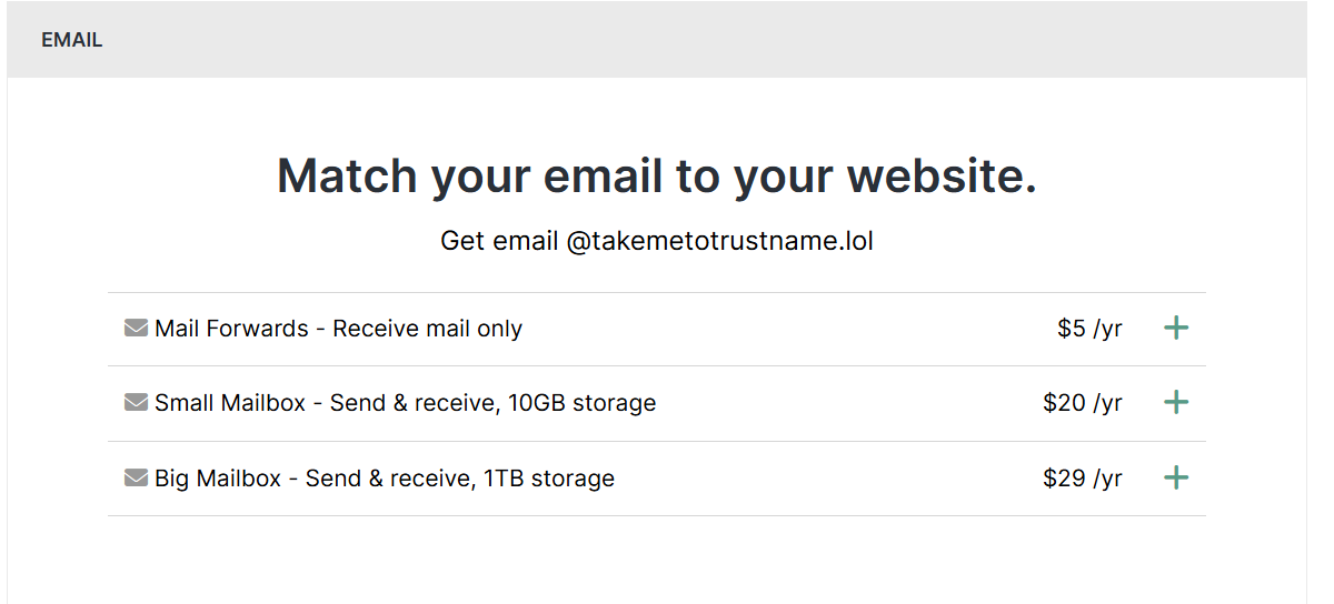 Additionally, Hover offers to get customers professional personal email addresses for $35/yr for each email address.