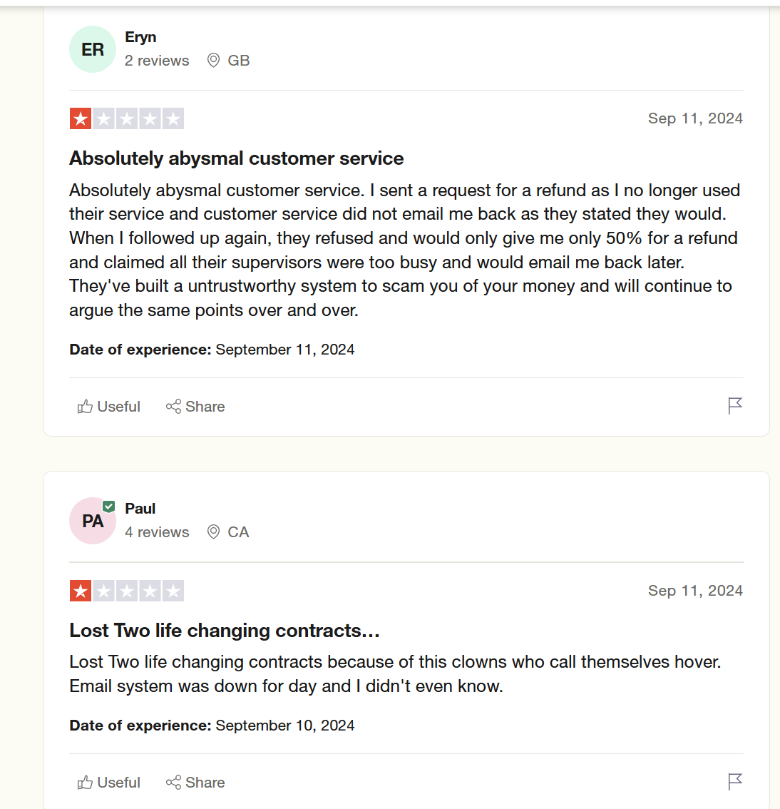 A recurring theme with people who complained about Hover's services was customer support. Customers frequently complained about taking too long to reach customer support reps or reaching reps who couldn't help them and were unkind in the process.