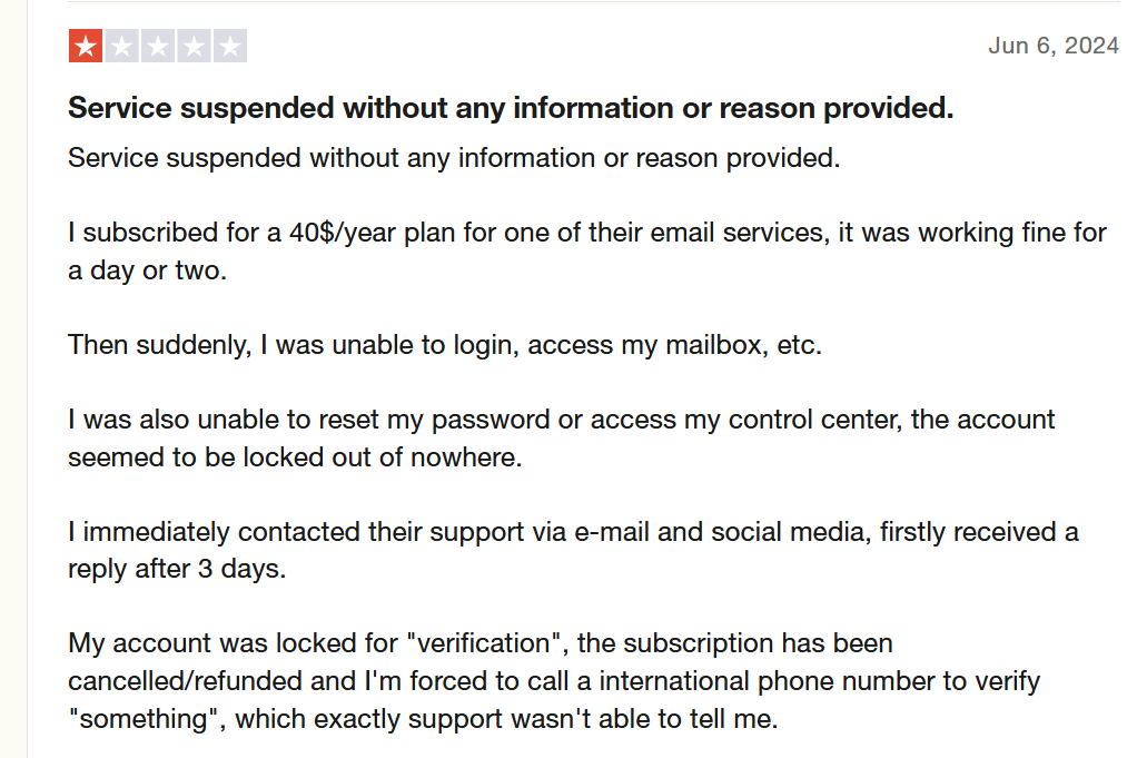 Unlike Hover, Trustname will never suspend your domain over vague claims without first notifying you or investigating properly.