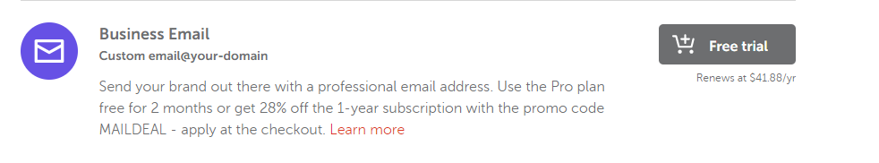 Next, consider business email, which jumps to a full price of $41.88 per year after a brief two month trial. Is your head spinning yet? Your initial $7.18 fee has ballooned to $59.93 just to remain protected and functional in your first year and the price only increases from there.