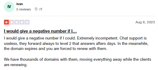 Customers of Internet.bs are fed up with being referred or forwarded to 'Level 2' support whenever they have a more niche request.