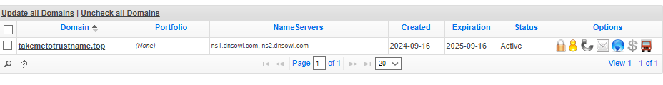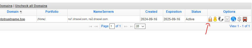 To disable the domain lock on Namesilo, head to your domain list as described above and click on the 'Padlock' icon next to the domain you want to unlock.