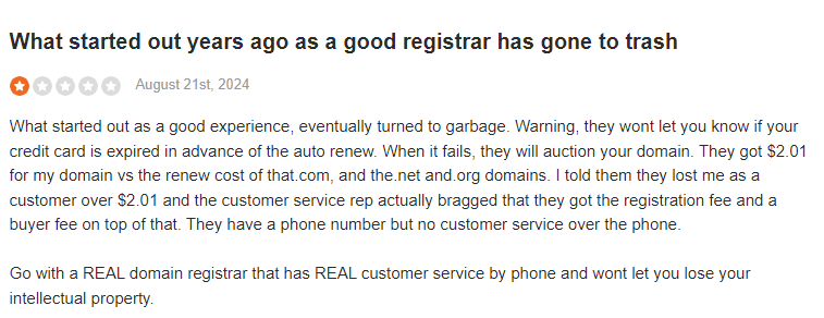 Customers complain that they never received any renewal notices or heads up that their domains were expiring, their domains were placed on auction, and sold off even before the Grace Period expired.