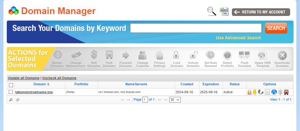On Trustname, you have access to each of your domain's management settings in just two clicks.