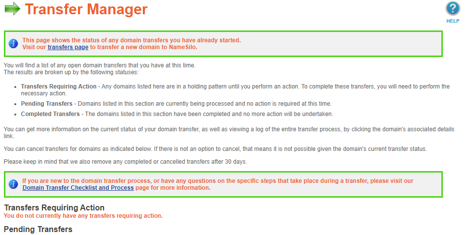 To expedite the transfer, head to Namesilo's transfer manager.