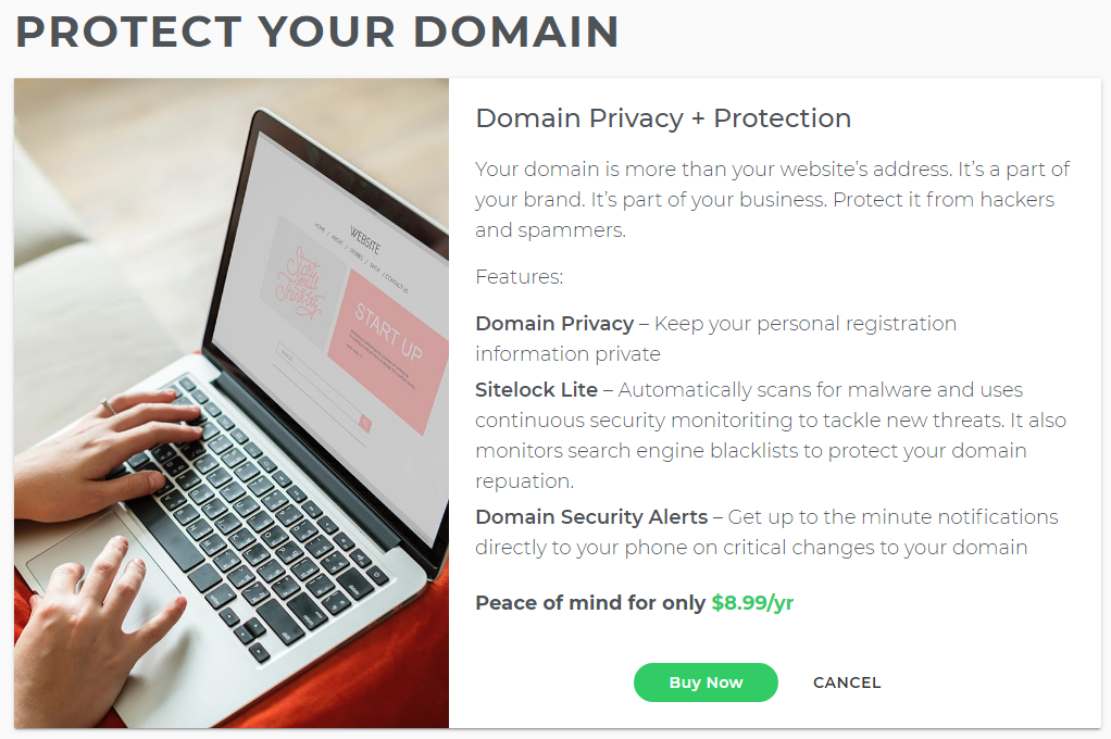 Registrars like iPage offer basic Whois domain privacy to hide personal information from public view, but this service costs $8.99 per year.