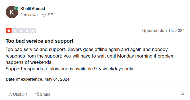 UltaHost is often criticized for unreliable support and limited technical expertise. Support availability is typically restricted to weekday business hours, and customers report receiving no assistance outside those times.