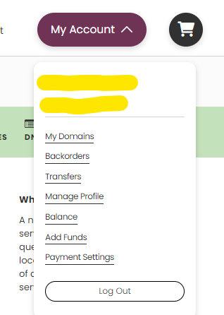 To review your nameservers, log in to your Epik account. Under the 'My Account' dropdown, click on 'My Domains'.