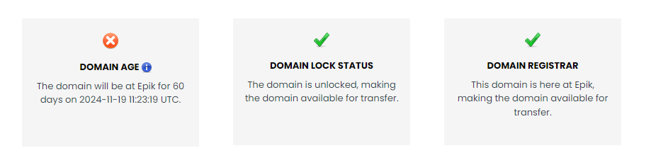 Confirm that your domain is eligible and out of the 60 days lock in your Epik account before proceeding with the transfer.