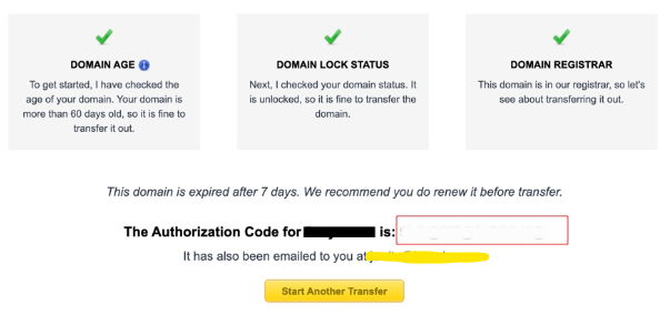 Confirm The Domain's Transfer Eligibility