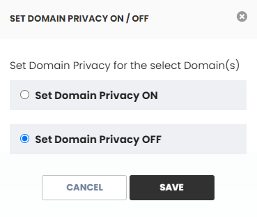 Click on 'Set Domain Privacy off'.