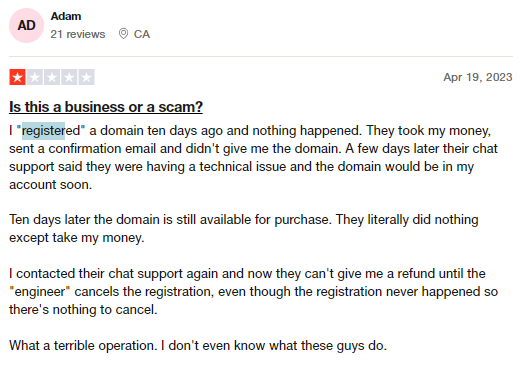 Customers also complain of an incredibly glitchy payment system, the brand deducting payments for registrations and renewals but not actually affects them on the registry level. - Smooth payment