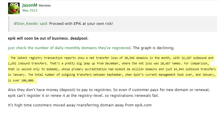 Many customers recognise that Epik is a sinking ship, and there's absolutely no reason why you should hold onto your domains there and put your online presence at risk.