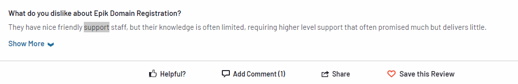 Customers also complain of Epik's support coming short. From agents who have limited knowledge about domain management to days between responses for basic inquiries, when you need on demand support, Epik may disappoint.