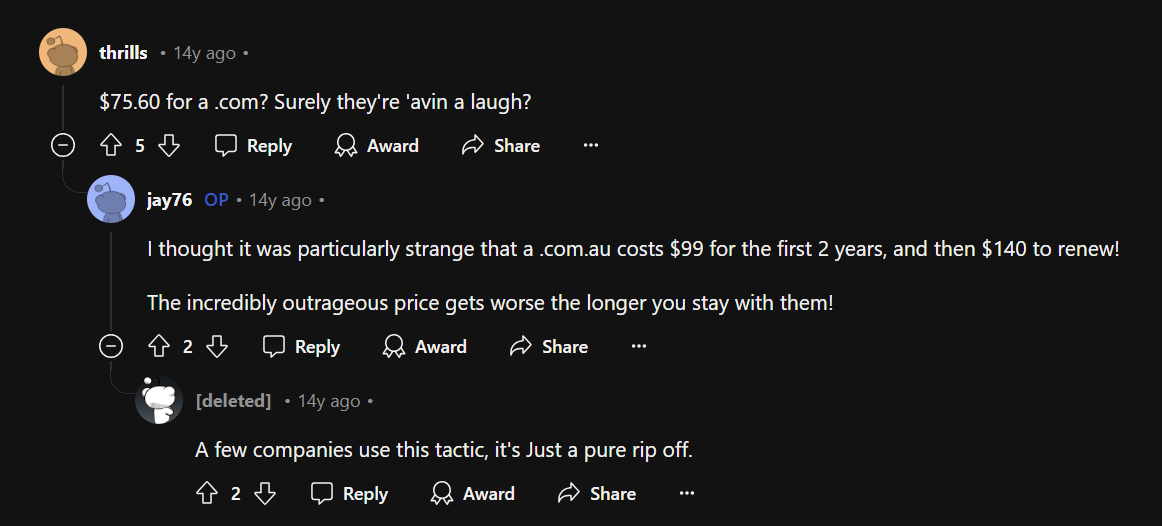 What immediately becomes obvious on the Melbourne IT platform is its outrageously priced domains.