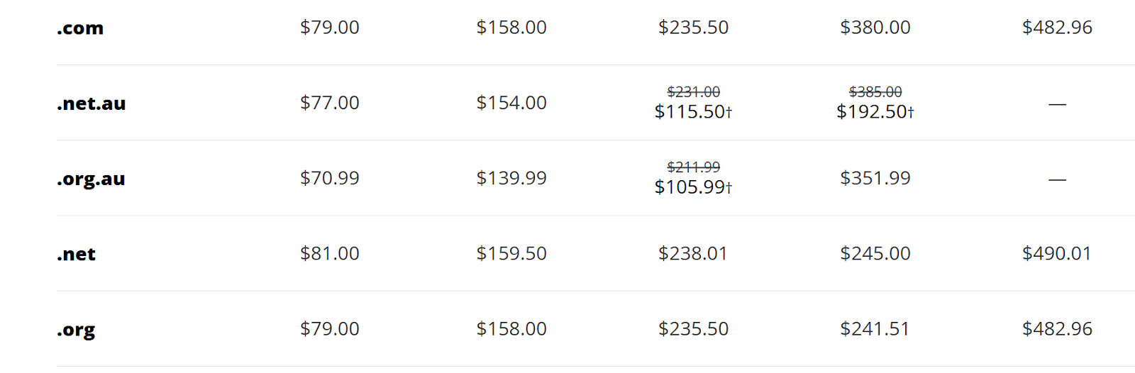 They position themselves as catering mainly to corporations and big businesses, making their domain prices out of reach for many individuals and small businesses. The image below shows the prices of regular TLDs on Melbourne IT over 5 years.