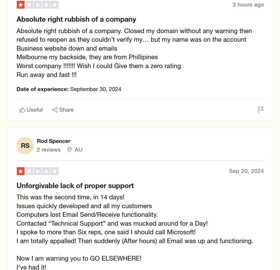 What's more incredible about these prices is that it doesn't come with other basic services that you may need. For email services, Melbourne IT uses a Microsoft 365 business plan, which costs users between $168.98 and $421.20 per year.