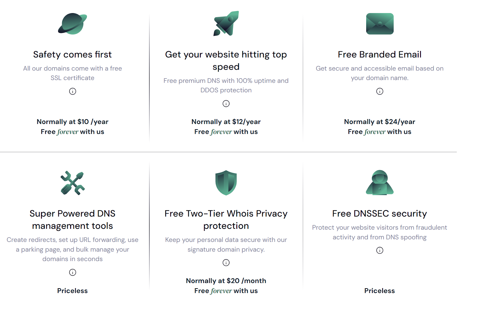 - Lower Costs – Free SSL (first year), free email forever, and affordable renewals.